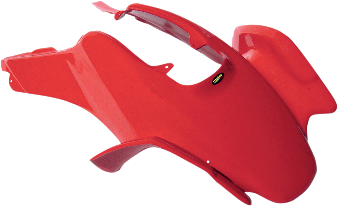 Front Fender - Red Fender Replacement Plastic — Racing Maier bodywork is made of tough, vacuum-formed, high-density polyethylene Uses stock hardware or provided hardware Drilling may be required in some applications Colors are OEM color matched