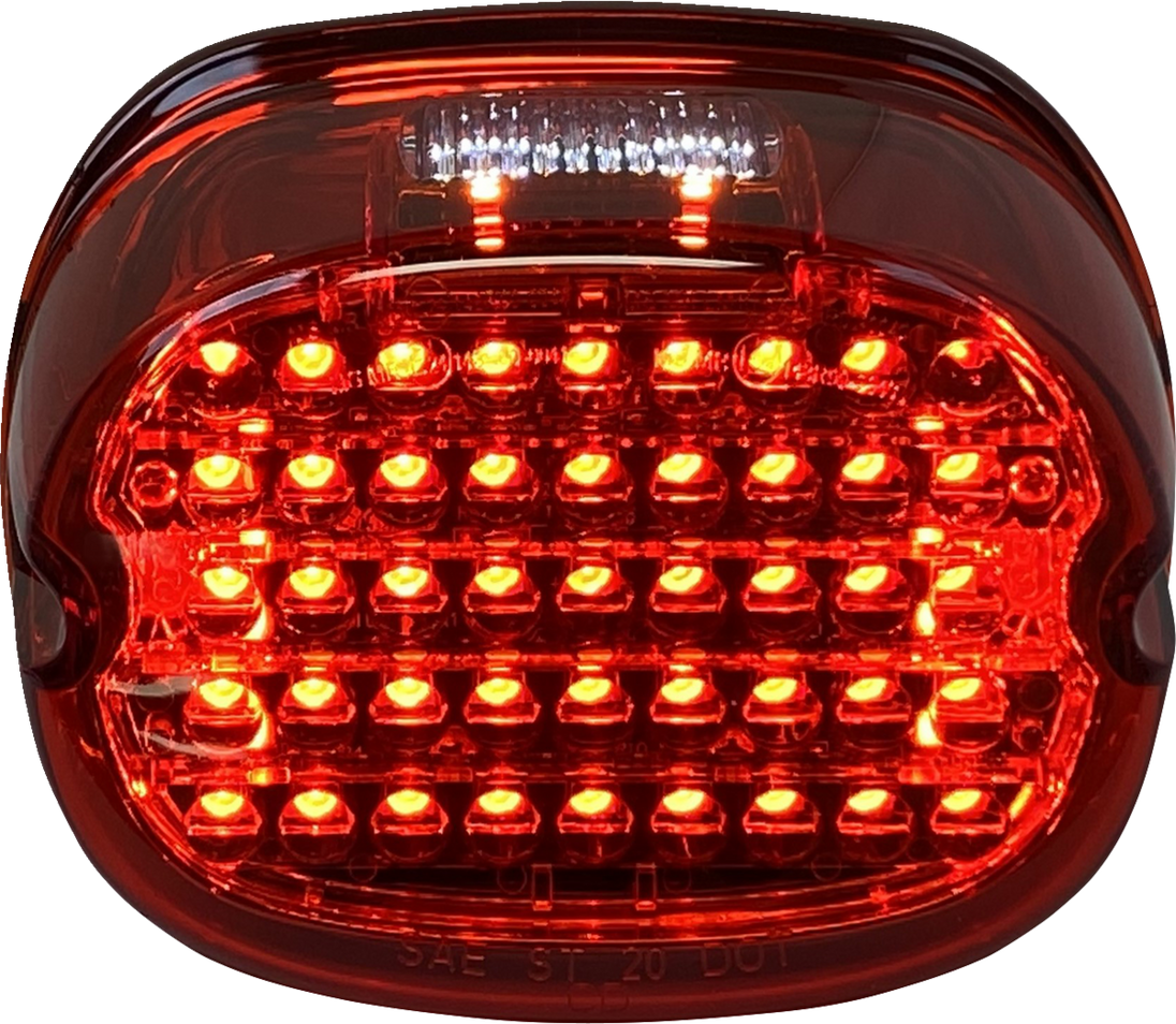 Taillight - Top Window - Red Low Profile LED Taillight 45 dual intensity red LEDs behind a spherical lens design to produce a bright red running and brake light The low profile design protrudes only two inches from the stock taillight baseplate Replacement gasket and nylon washers included for easy plug and play installation into OEM taillight circuit board DOT/SAE compliant Fitment: