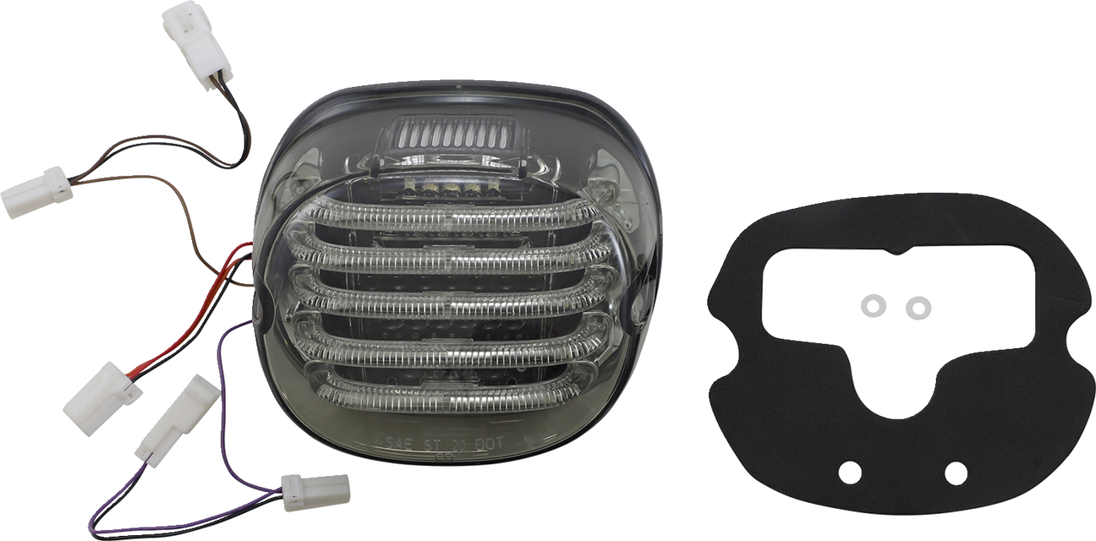 Taillight/Turn Signal - Top Window - Smoke Lens ProBEAM® Integrated Low Profile LED Taillights with Auxiliary Turn Signals 5 LED running light pipes with full contrast red brake LEDs, and built in left and right amber auxiliary turn signals The low profile design protrudes only two inches from the stock taillight baseplate Replacement gasket and nylon washers included for easy plug and play installation into OEM taillight circuit board DOT and SAE compliant run/brake light Fitment: