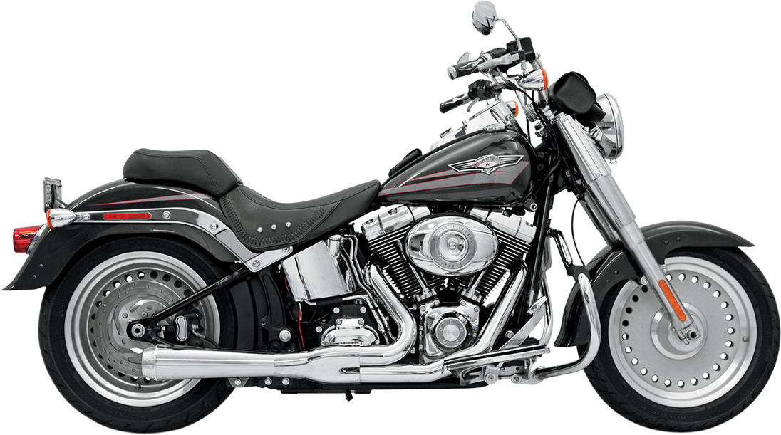 2:1 Exhaust - Chrome - Short - Softail Road Rage 2:1 Exhaust System Feature stepped headers that start at 1-3/4" headpipe steps up to 1-7/8" into the collector to increase flow and improve performance Billet end cap and removable baffle is packed for throaty sound and increased low-end torque 16-gauge steel headpipe, muffler and heat shield for strength O2 ports and plugs included Made in the U.S.A. This part is not authorized to be shipped to CALIFORNIA.