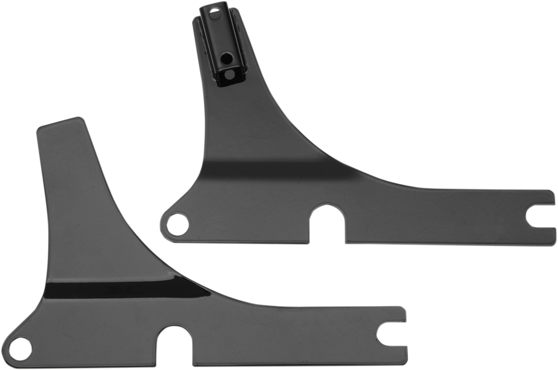 Side Plates - FXSB - Black Sissy Bar Side Plates Ridged mounted sissy bar side plates made of 10 gauge steel No turn signal relocation required Does not include hardware to mount sissy bar. Fitment: