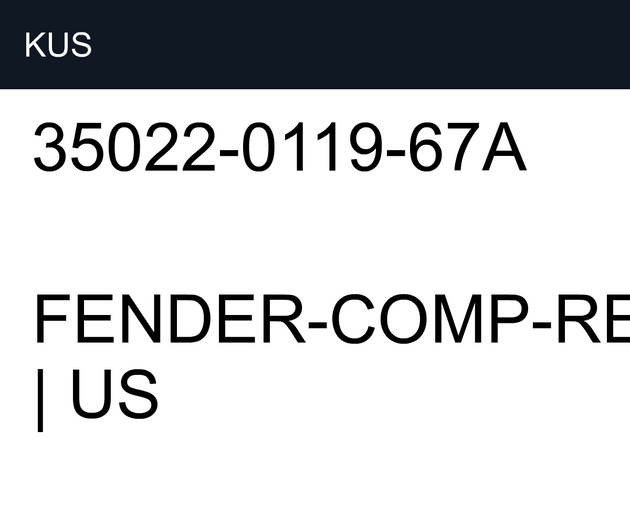 KUS FENDER-COMP-REAR,B.GRAY | US 35022-0119-67A