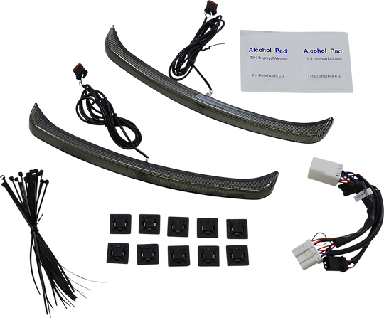 Fender Light - Tri Glide Dynamic LED Fender Lights Add forward facing bright white running light with full contrast amber turn signal to the front of your Harley-Davidson® Tri Glide rear fenders Each light bar is...Regular price $249.95 -