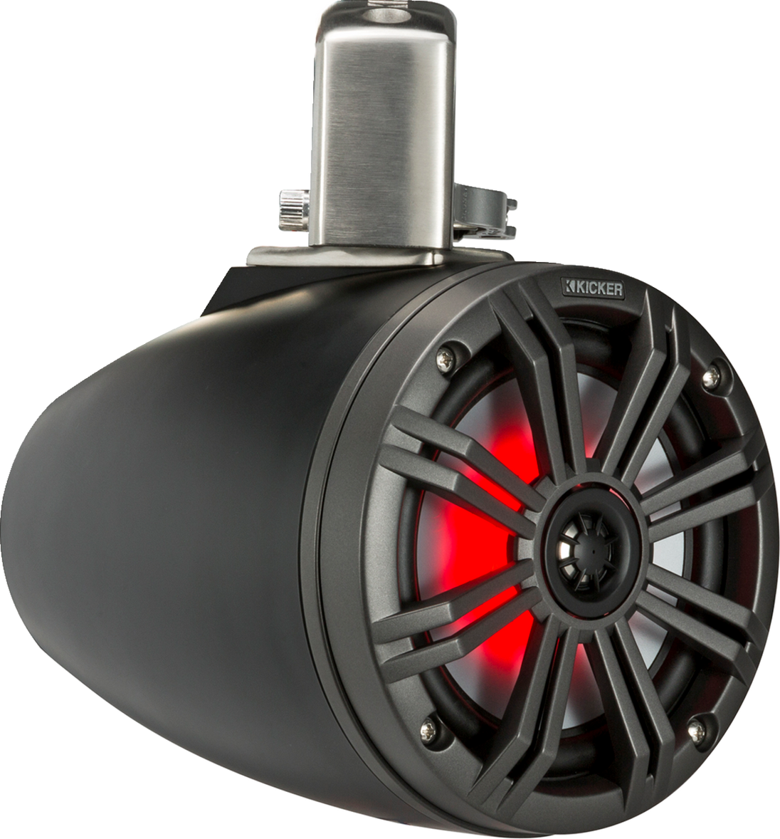 Speakers - 6-1/2" - with Brackets Tower Speakers UV-Treated polypropylene woofer with Santoprene® Surround UV-Resistant polymer basket Near full rotation swivel with Toolless Locking Cam/Toggle System Stainless steel/ABS clamp fits 1-1/2" - 3-1/4" tubing Stainless mounting hardware included Grille with Seven-Color LED System included Works best with 65 W of recommended power Mounts horizontally or vertically All weather use, marine grade