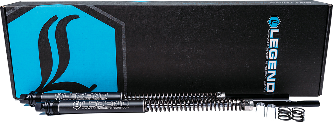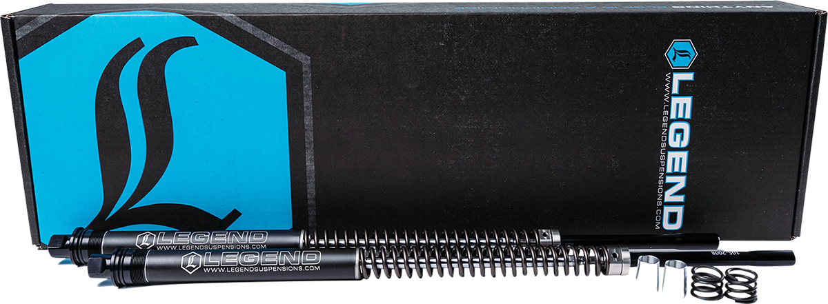 AXEO+2 (+2" Raised) Fork Cartridge - Black - 41 mm - '97-'13 Touring Models AXEO+2 (+2" Raised) 41 mm Front Suspension Designed to be used with stock diameter front wheels Easy installation Includes two mono-tube, dual chambered damper cartridges, and two top out springs Performance spring rate Machined 303 Stainless threaded pre-load adjuster Increased pre-load range allows the tuning for various riding styles and weights Ride quality is smooth and controlled Improves stability, cornering, and traction Eliminates front-end dive during aggressive braking and maneuvering Firm feel for high-speed sweeping turns Eliminates bottoming out on large bumps or potholes Reduces dragging floorboards and pegs Designed for optimum performance with Legend rear suspensions Made by hand in Sturgis, SD USA P65 WARNING: Cancer and Reproductive Harm Fitment:
