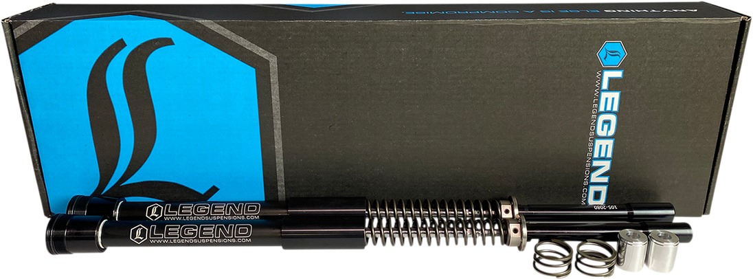 AXEO+2 (+2" Raised) Fork Cartridge - Black - 49 mm AXEO+2 (+2" Raised) 49 mm Front Suspension Designed to be used with stock diameter front wheels Easy installation Includes two mono-tube, dual chambered damper cartridges, and two top out springs Performance spring rate Machined 303 Stainless threaded pre-load adjuster Increased pre-load range allows the tuning for various riding styles and weights Ride quality is smooth and controlled Improves stability, cornering, and traction Eliminates front-end dive during aggressive braking and maneuvering Firm feel for high-speed sweeping turns Eliminates bottoming out on large bumps or potholes Reduces dragging floorboards and pegs Designed for optimum performance with Legend rear suspensions Made by hand in Sturgis, SD USA P65 WARNING: Cancer and Reproductive Harm Fitment: