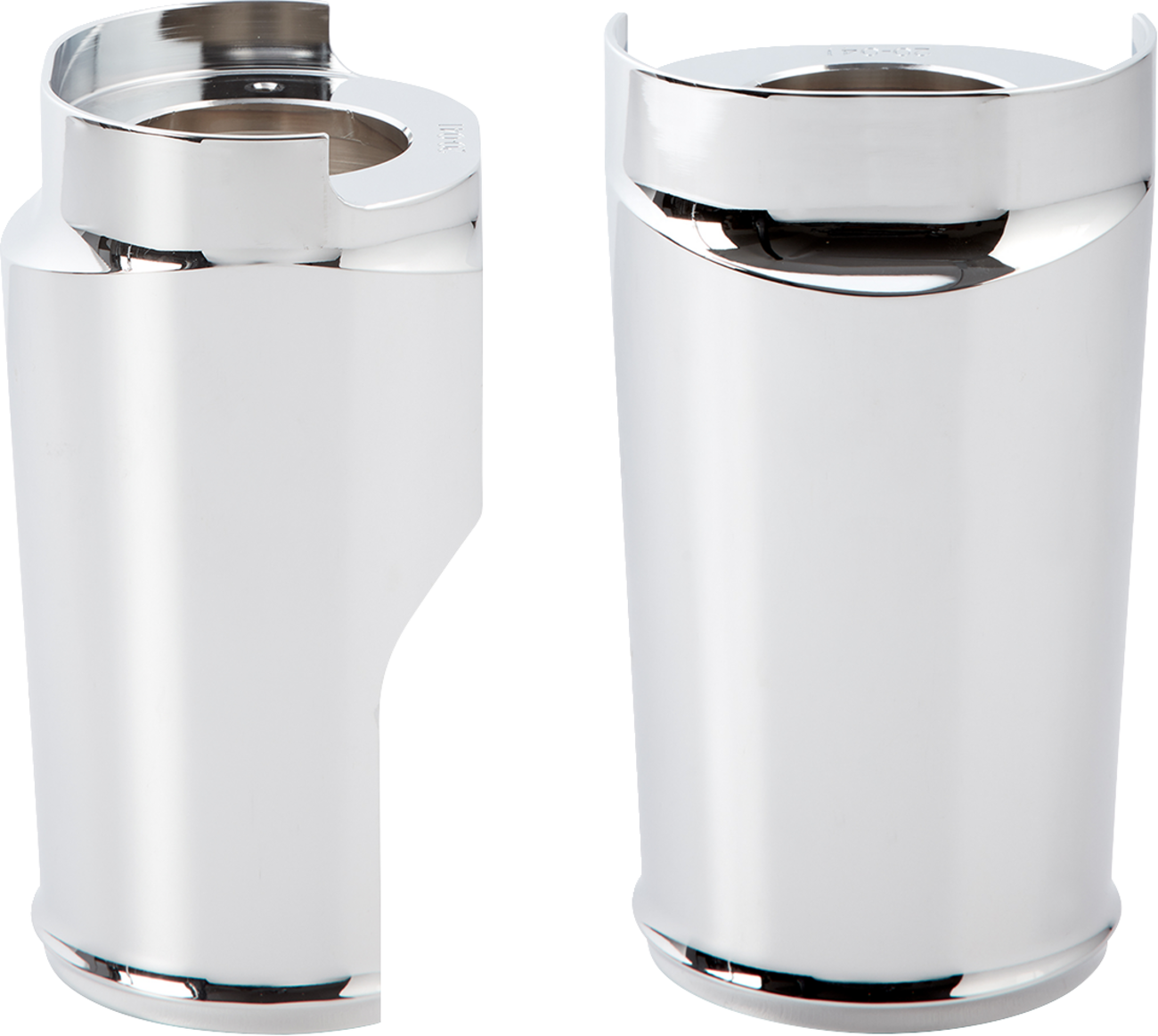 Fat Tire Fork Boot Cover - Chrome Fork Boot Features notched inside surfaces to allow direct bolt-on fitment of 18” x 5.5” wide/fat front fenders and wheel kits on touring models Universal design accepts all aftermarket fat/wide front fender kits Fork boots will work with factory and aftermarket fork legs CNC-machined from billet aluminum Check clearances when installing with fat front wheel/fender applications. Fitment: