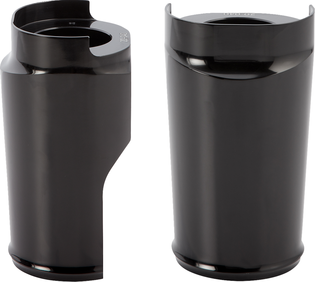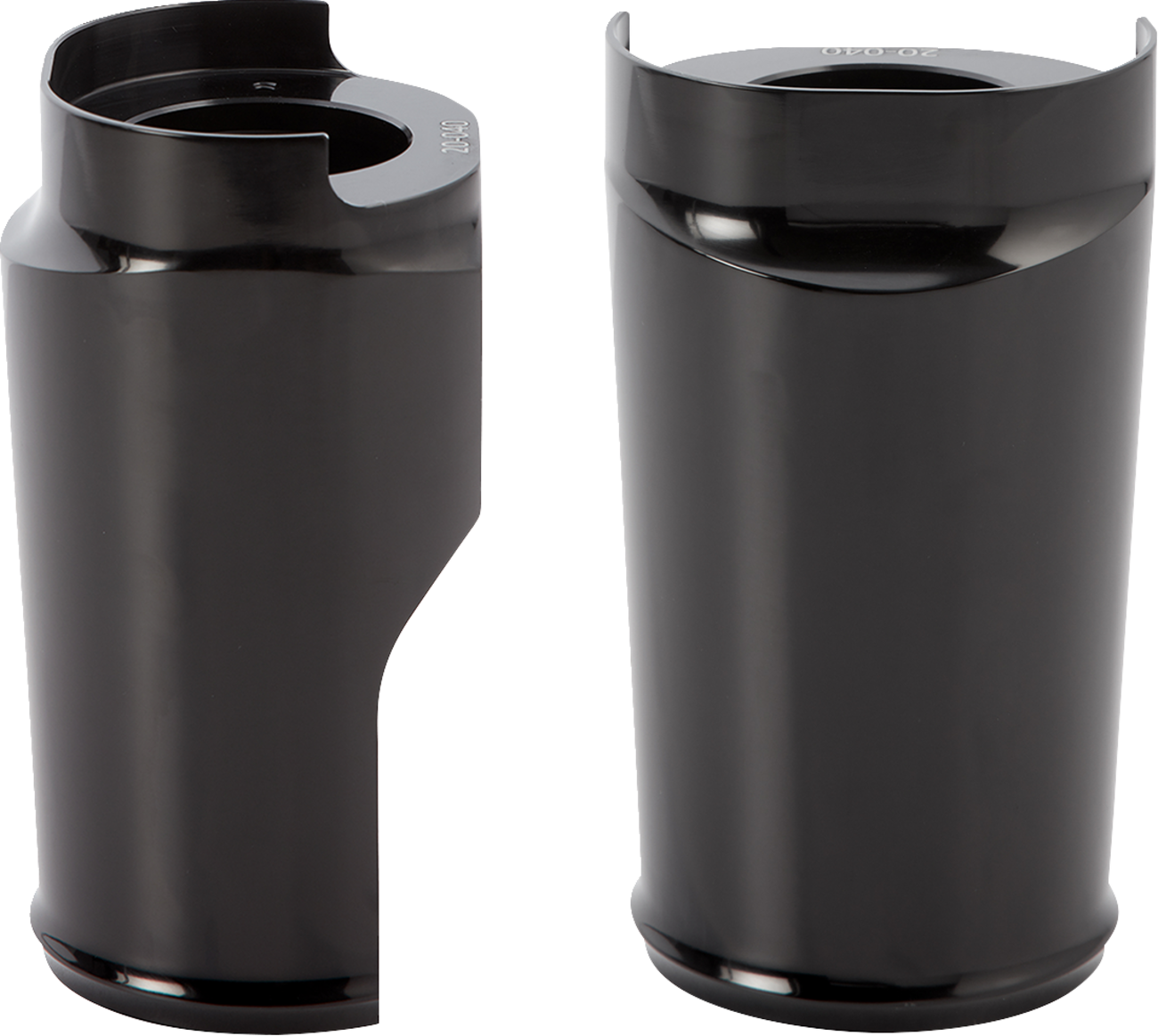Fat Tire Fork Boot Cover - Black Anodized Fork Boot Features notched inside surfaces to allow direct bolt-on fitment of 18” x 5.5” wide/fat front fenders and wheel kits on touring models Universal design accepts all aftermarket fat/wide front fender kits Fork boots will work with factory and aftermarket fork legs CNC-machined from billet aluminum Check clearances when installing with fat front wheel/fender applications. Fitment: