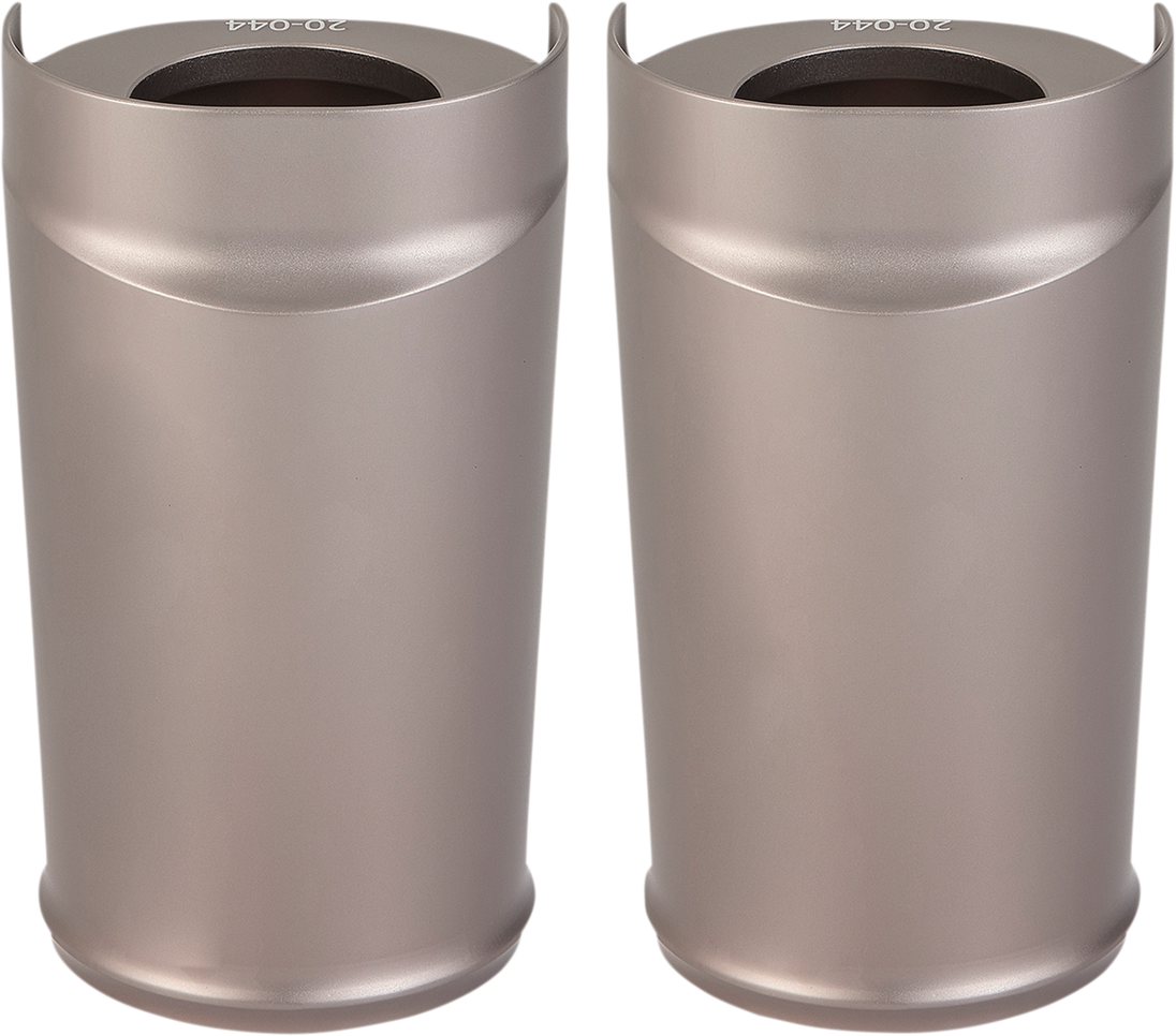 Fat Tire Fork Boot Cover - Titanium Fork Boot Features notched inside surfaces to allow direct bolt-on fitment of 18” x 5.5” wide/fat front fenders and wheel kits on touring models Universal design accepts all aftermarket fat/wide front fender kits Fork boots will work with factory and aftermarket fork legs CNC-machined from billet aluminum Check clearances when installing with fat front wheel/fender applications. Fitment: