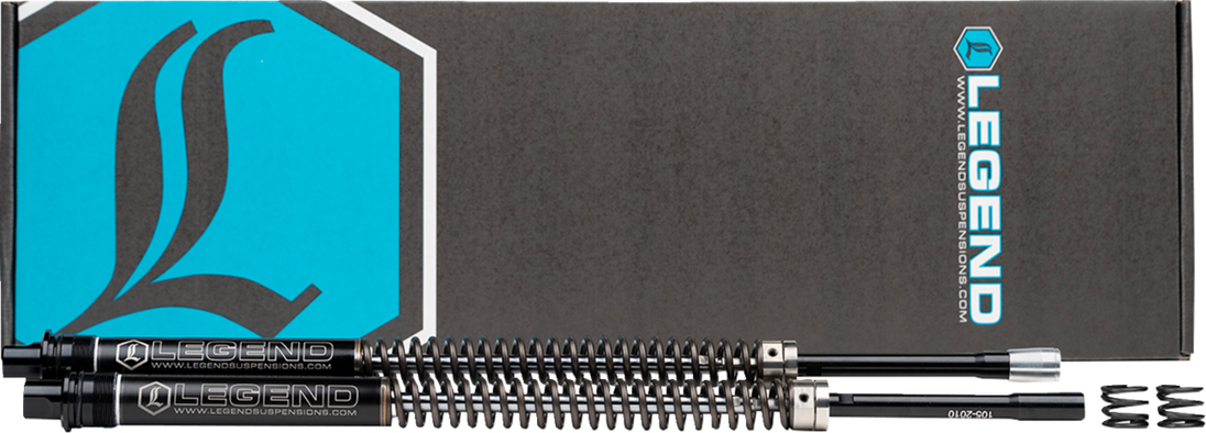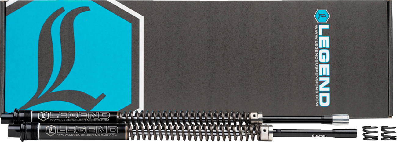 Standard AXEO Front Suspension - 41 mm - '97-'13 Legend AXEO High-Performance Front Suspension System For FL Touring Models Special Instructions: FATBOOK YEAR AP S/B 99-13?25PJL FATBOOK YEAR AP S/B 99-13€?25PJL Designed to be used with stock diameter front wheels Easy installation Includes two mono-tube, dual chambered damper cartridges and two top out springs Performance spring rate Machined 303 Stainless threaded pre-load adjuster Increased pre-load range allows the tuning for various riding styles and weights Ride quality is smooth and controlled Improves stability, cornering and traction Eliminates front-end dive during aggressive braking and maneuvering Firm feel for high-speed sweeping turns Eliminates bottoming out on large bumps or potholes Reduces dragging floorboards and pegs Designed for optimum performance with Legend rear suspensions Lifetime Warranty Made by hand in Sturgis, SD USA P65 WARNING: Cancer and Reproductive Harm This product is NOT designed for use with 21" and 23" wheels Fitment: