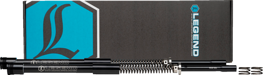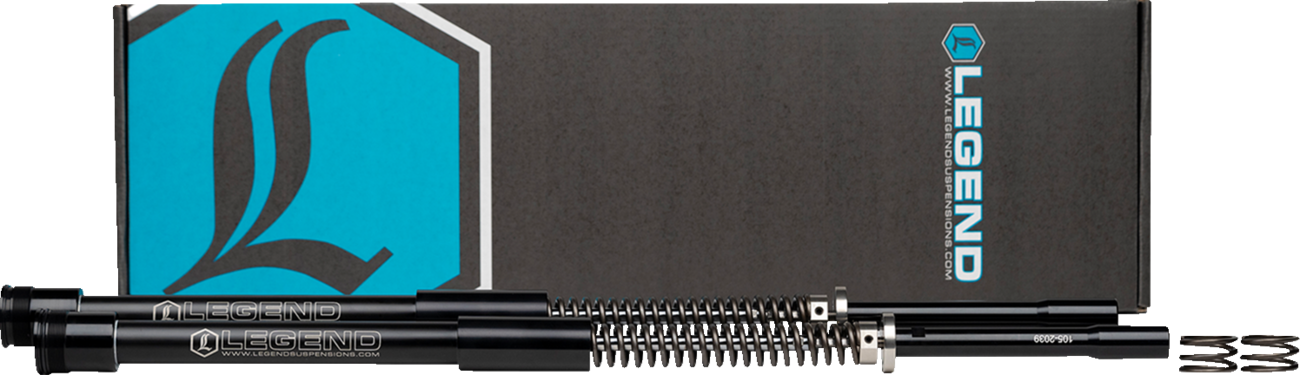 AXEO Front End Suspension - 49 mm - Dyna Wide Glide '10-'17 Legend AXEO High-Performance Front Suspension System For FL Touring Models Special Instructions: DISREGARD FOOTNOTE #5 25PJL DISREGARD FOOTNOTE #5 €25PJL Designed to be used with stock diameter front wheels Easy installation Includes two mono-tube, dual chambered damper cartridges and two top out springs Performance spring rate Machined 303 Stainless threaded pre-load adjuster Increased pre-load range allows the tuning for various riding styles and weights Ride quality is smooth and controlled Improves stability, cornering and traction Eliminates front-end dive during aggressive braking and maneuvering Firm feel for high-speed sweeping turns Eliminates bottoming out on large bumps or potholes Reduces dragging floorboards and pegs Designed for optimum performance with Legend rear suspensions Lifetime Warranty Made by hand in Sturgis, SD USA P65 WARNING: Cancer and Reproductive Harm This product is NOT designed for use with 21" and 23" wheels Fitment: