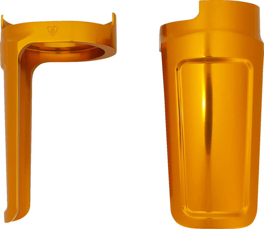 Method® Fork Guard Cover - Gold Method® Performance Bagger Fork Guards Method® Fork Guards features lightweight race inspired styling gives the exposed fork tube look without sacrificing protection Replaces OEM upper fork covers Designed to work with factory or aftermarket lower fork legs Looks great with gold or all black DLC coated fork tubes Fitment: