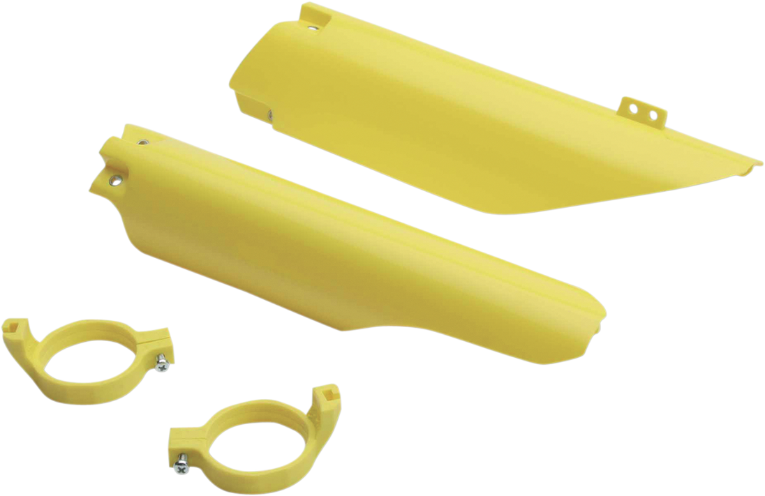 Fork Cover - Yellow - SUZ - '04-'05 Suzuki Fork Tube Protectors Pre-drilled pieces mount easily to stock locations Fitment: