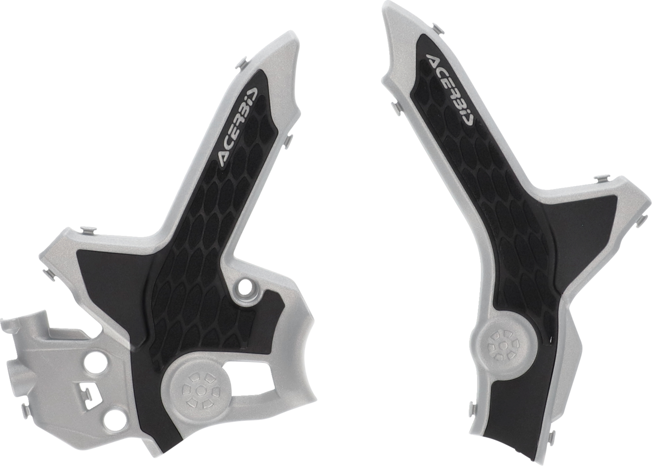 X-Grip Frame Guards - Gray/Black - CRF300 X-Grip Frame Guards Protects frame of the motorcycle from wear Adds additional grip to the bike Made from a dual-injected mold; outer plastic is durable polycarbonate, inner plastic is durable, yet pliable Easy assembly and disassembly using rubber expanders and elastics