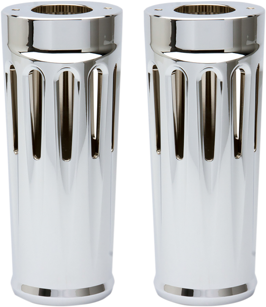 Deep Cut Fork Boot Covers - Chrome - FL Aluminum Fork Boot Covers — Deep Cut CNC machined from billet aluminum 2” fork boots are 2” longer than standard boots for bikes with large diameter wheels...Regular price $279.95 -