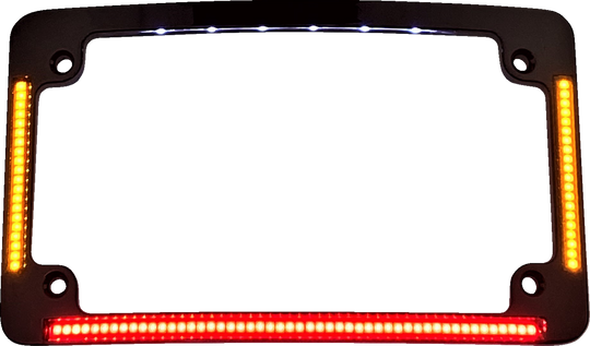License Plate Frame - Radius - Black All-in-One License Plate Frame License plate frame with six bright white license plate LEDs Flushmount run, brake and turn signal LEDs 45 super bright flushmount dual-intensity red running/brake LEDs...Regular price $129.95