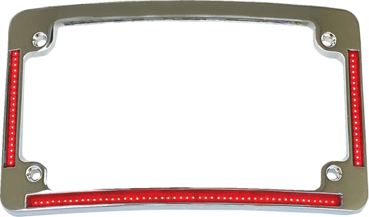 License Plate Frame - Red/White LED - Chrome Radius License Plate Frame with Auxiliary Red LEDs and Tag Illumination Three banks of auxiliary red LEDs and tag illumination 20 red LEDs are flush mounted on either...Regular price $129.95 -