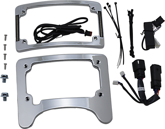 License Plate Frame/Turn Signal Eliminator - Chrome Turn Signal Eliminator with Tri Radius Illuminated Plate Frame Light-weight aluminum radius license plate mount adds a custom look to the rear fender by eliminating the stock rear turn...Regular price $189.95