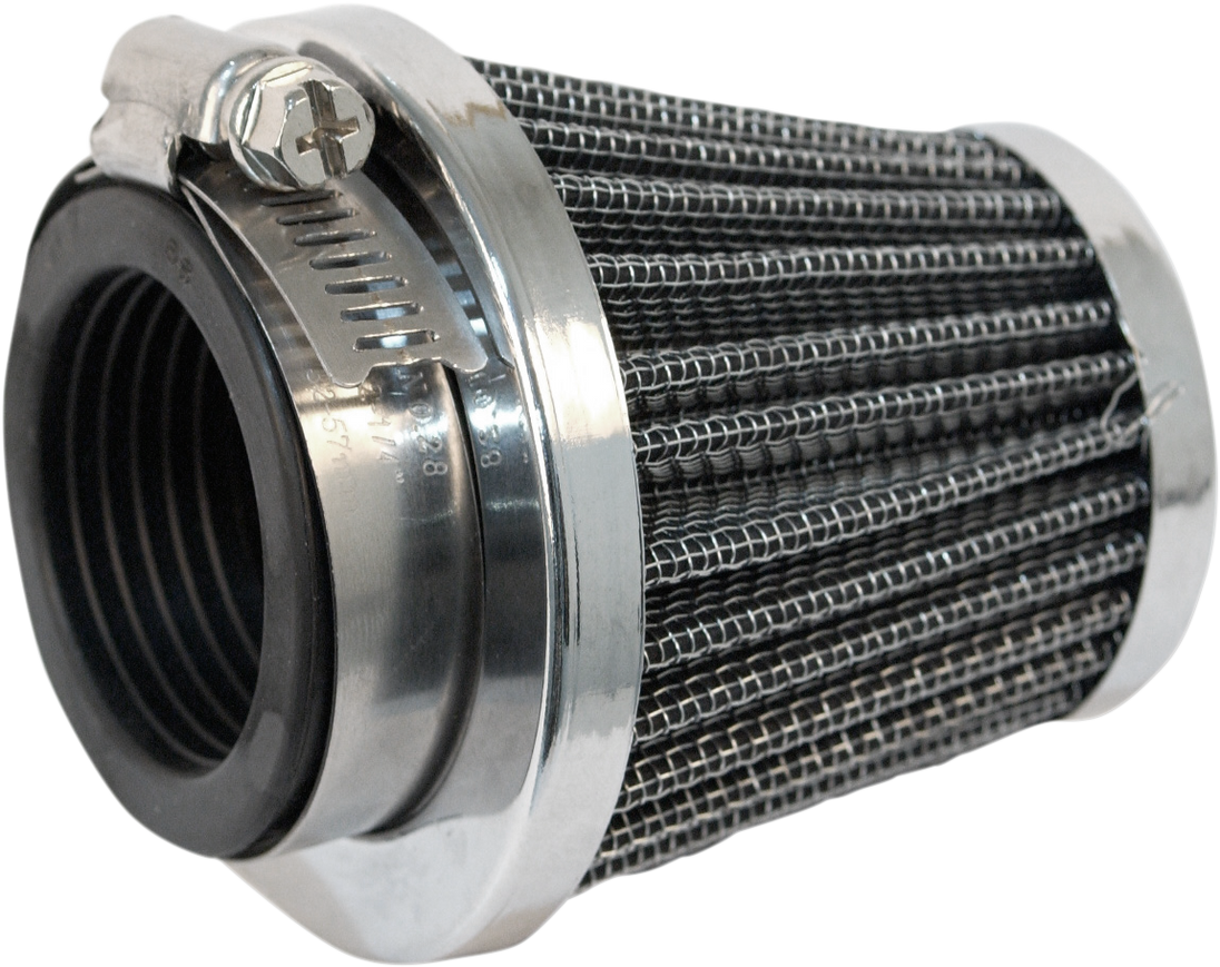 Pod Air Filter - 39mm Clamp-On Pod Air Filter Use included stainless steel clamp for secure attachment Quality high-flow paper elements with chrome end caps Width is the largest diameter of filter media Check carb inlet outer diameter before ordering Fitment: