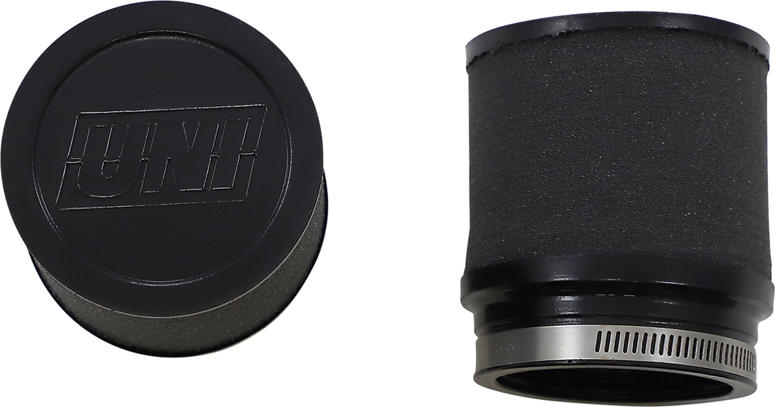 Air Filter - 2-1/8" - 2-1/4" x 3" High-Flow Street Bike Filter Uni Filter Pod Kits enhance appearance and performance Jetting changes may be required Charcoal-colored filter media Two filters per package Stainless steel clamps Fitment: