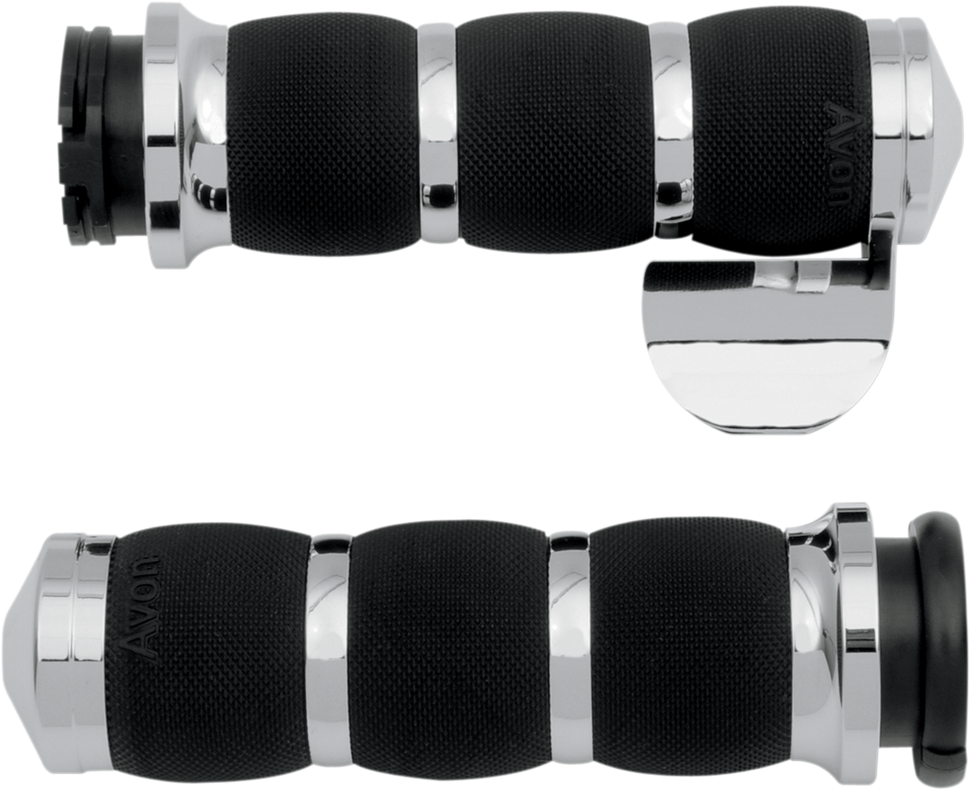 Feature billet end caps and rings with ergonomic AVON seamless rubber grip technology