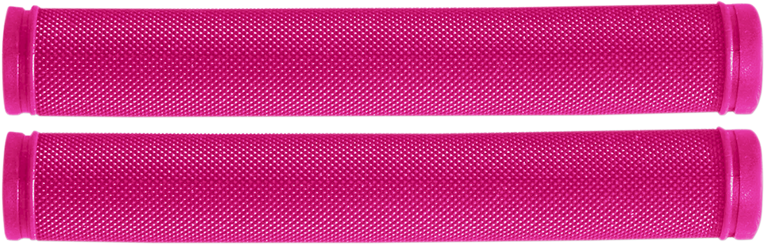 Grips - Rubber - 7" - Pink 7" Colored Rubber Grips Ultra-tacky diamond grip surface is soft and comfortable Compatible with hand warmers Durable rubber compound lasts longer and offers increased comfort Fits over RSI aluminum and steel handlebar hooks as well as other handlebars that have pre-bent hooks Thinner rubber design provides a smaller, round feel when installed onto the handlebar. Great for people who want a smaller feel or have smaller hands Can be cut down for custom lengths Works great on stock handlebars or handlebars with short-style hooks These grips will not be long enough if running a RSI long bar hook or when using handlebars with pre-bent long/90 hooks. For longer hook applications, the RSI 8" rubber grips or RSI Grip Wrap grips work better