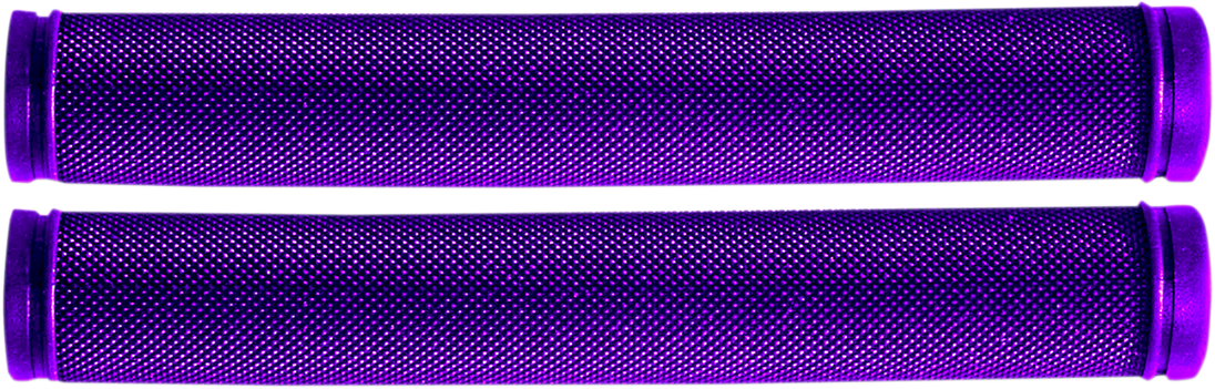 Grips - Rubber - 7" - Purple 7" Colored Rubber Grips Ultra-tacky diamond grip surface is soft and comfortable Compatible with hand warmers Durable rubber compound lasts longer and offers increased comfort Fits over RSI aluminum and steel handlebar hooks as well as other handlebars that have pre-bent hooks Thinner rubber design provides a smaller, round feel when installed onto the handlebar. Great for people who want a smaller feel or have smaller hands Can be cut down for custom lengths Works great on stock handlebars or handlebars with short-style hooks These grips will not be long enough if running a RSI long bar hook or when using handlebars with pre-bent long/90 hooks. For longer hook applications, the RSI 8" rubber grips or RSI Grip Wrap grips work better