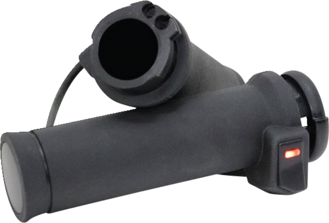 Grips - Heated - Apollo-X - Cable Apollo-X Heated Grips Integrated thumb switch enables riders to easily scroll through 5 temperature levels without taking a hand off the handlebars Color LED indicator displays which temperature setting is in use Soft to the touch rubber is comfortable for short or long rides Internal memory allows the grips to stay at previous warmth level Low battery cut off protection Ideal for all season riding