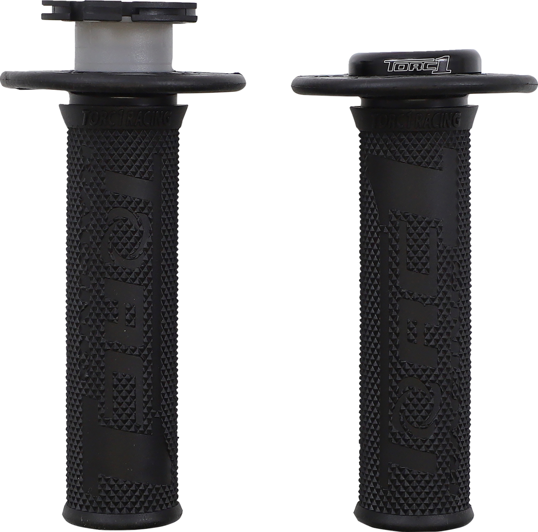 Grips - Defy - Lock-On - Diamond - KEV-TEC Ballistic Rubber - Black Defy Lock On Grips 100% slip free performance guaranteed Simple installation without waiting for glue to dry OEM spec throttle tube included with 22 point adjustment to put the waffle pattern right where you need it Snap-on multi adjust throttle cams included in each 4-stroke or 2-stroke bike kit No need to purchase any throttle cams separately CNC-machined aluminum locking collar with Torx T15 stainless bolt helps resist stripping and corrosion Race tested diameter with a soft, tacky compound provides the ultimate in feel and control Tapered waffle pattern helps contour to your hand and provides thumb relief Grip donut groove helps keep grip donut flat and in place if needed Knockout ends easily to accommodate wrap-around handguards Mini bike cams for 50cc, 65cc, 85cc, and KLX110 models sold separately.