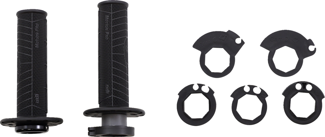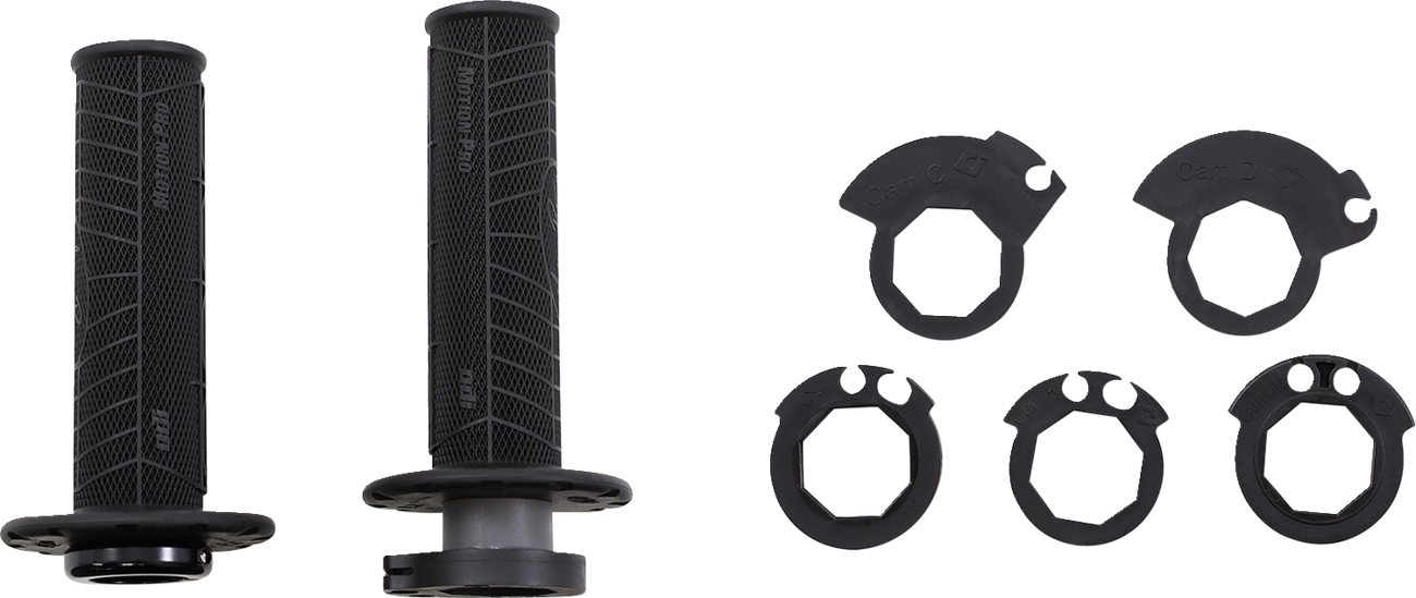 Grips - DirtControl V2 - Black DirtControl V2 Lock-On Grips Made with ODI’s V2 Lock-On System, the DirtControl V2 Lock-On Grips will come complete with 6 snap-cams to fit most modern full-size MX bikes Web pattern provides an ergonomic feel with excellent finger-tip traction Constructed of a durable medium density compound Reverse knurling delivers traction to deliver security in wet or dry conditions