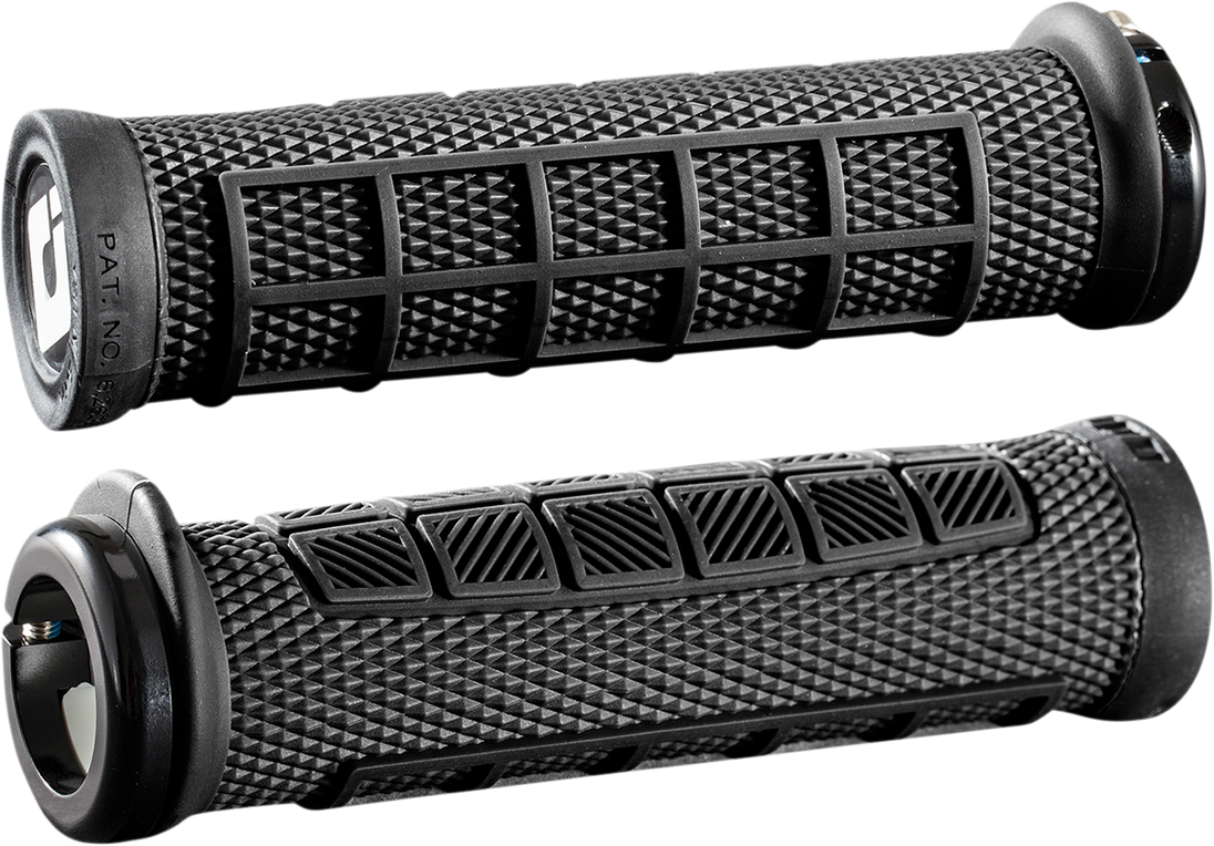Elite Pro MTB Grips - Black/Black Elite Pro Lock-On Grips Ergonomic design conforms to riders hand without feeling bulky, provides padding where it is needed most Half-waffle pattern on the front of the grip provides extra control when you are off the back of the bike Version 2.1 single clamp lock-on system for more usable grip space and improved comfort on the outside of the grip Variable knurl pattern alternates from smooth to sharp texture to provide more traction without irritating your hands Reinforced end molded out of soft, but durable material to prevent grip blowout