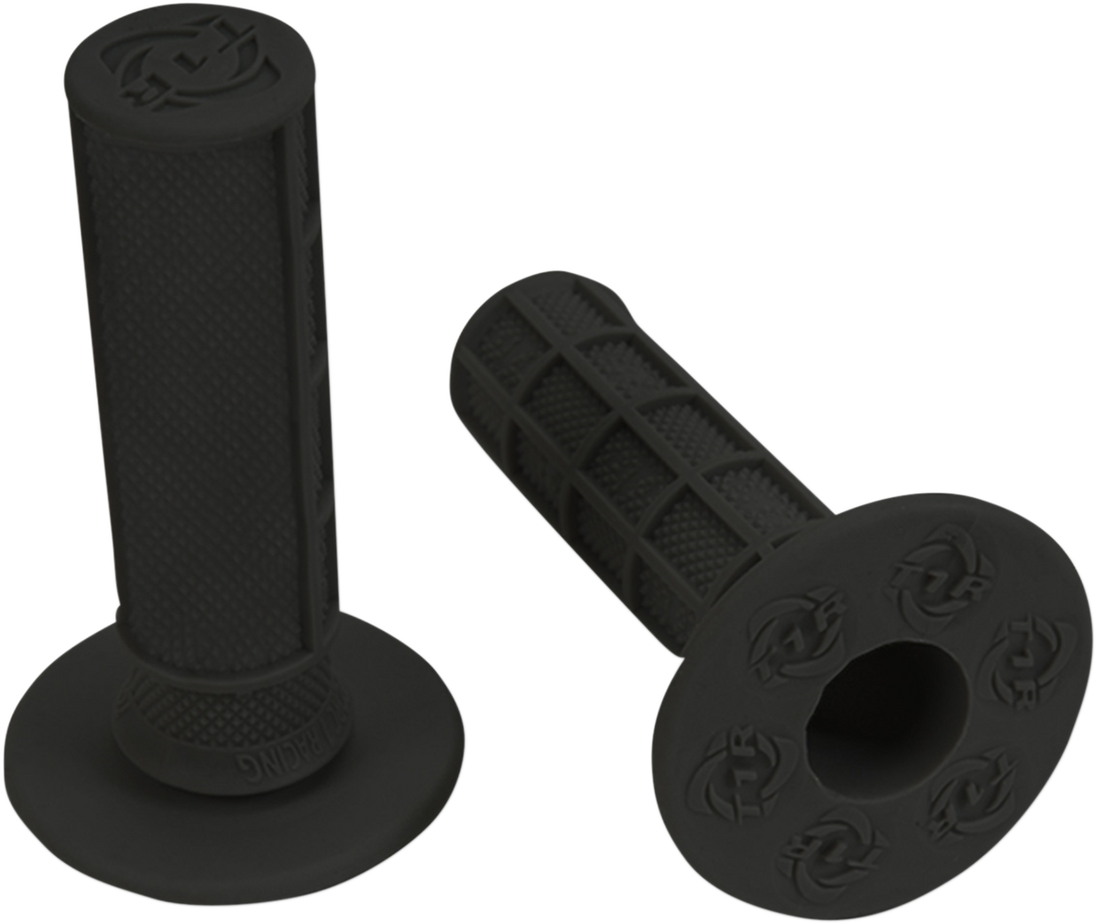 Grips - Holeshot - Soft - MX - Black Holeshot Grips Race tested diameter and half waffle design provides the ultimate in feel and control Exclusive Kraton rubber compound provides longer wear and tear as well as superior glove traction Wire grooves for added safety Grip groove helps keep the grip donut flat and in place if needed Single tube of grip glue included with each set ATV grips will also work for watercraft and snowmobile applications