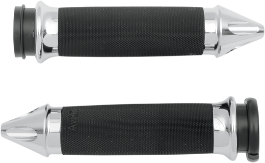 Grips - Custom - Spike End - Chrome Custom Spike End Grips Feature an ergonomic AVON seamless rubber grip technology Billet aluminum end caps and collars Made in the U.S.A.Regular price $85.95 -