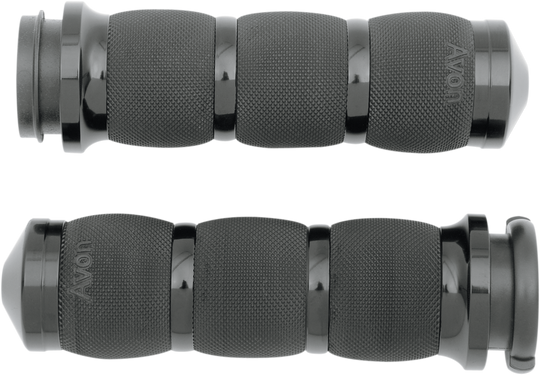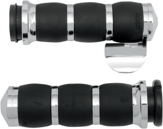 Grips - Air Cushion - TBW - Chrome 3-Ring Air Cushioned Grips — Standard Feature billet end caps and rings with ergonomic AVON seamless rubber grip technology Designed with a very soft, tacky and durable material...Regular price $74.95 -