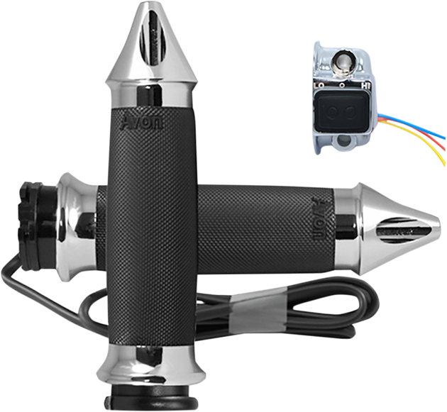 Grips - Heated - Custom Contour - Spike - Cable - Chrome (Pair)-06310199 PU