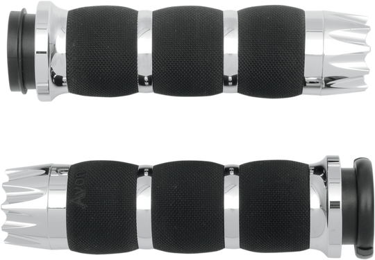 Grips - Gatlin - Air Cushioned - Chrome Gatlin Air Cushioned Grips Feature billet end caps and rings with ergonomic AVON seamless rubber grip technology Designed with a very soft, tacky, and durable material Touring-style grips...Regular price $99.95 -