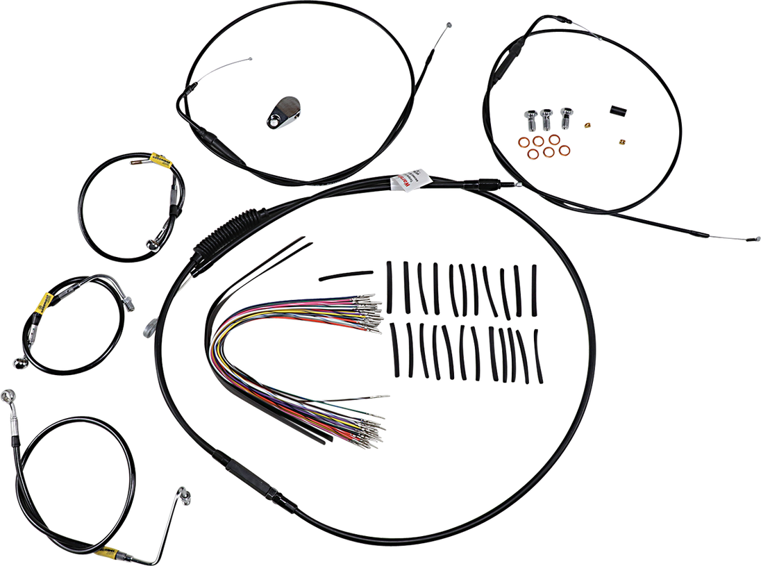 Control Kit - Early Touring Bikes - 13" Bagger Bar Handlebars - Black Control Kit for Early Touring Bikes with Bagger Bar Handlebars Each kit includes a bar length specific extended brake line, an extended clutch line and extended wiring, all the components necessary to install handlebars on your Harley-Davidson touring model Fitment: