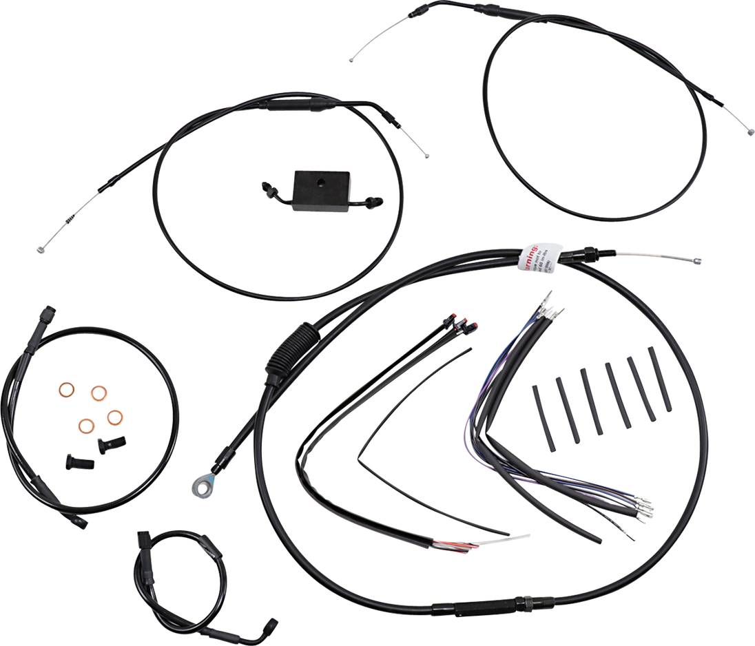 Handlebar Cable and Brake Line Kit - Extended - Sportsters - 14" T-Bar Handlebars - ABS Extended Handlebar Cable and Brake Line Kit for Sportsters with ABS Each kit includes all of the components necessary to install handlebars on the Sportster models Includes a bar length specific extended brake line, extended clutch cable and extended wiring for installation Fitment: