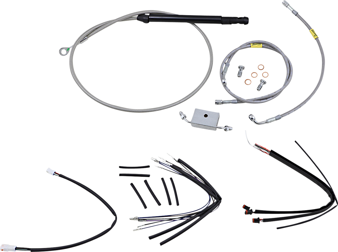 Control Kit - 18" Gorilla Handlebars - Stainless Handlebar Cable and Brake Line Kit for Burly Ape Handlebars Complete cable/line installation kits Kits include extended brake line, extended clutch cable/clutch line, extended throttle/idle cables as required and all necessary wiring extensions Brake lines feature PTFE inner liner and heavy-duty stainless steel outer braid Made in the U.S.A. Kits are based on using 2” risers with Ape hanger-style handlebars Fitment: