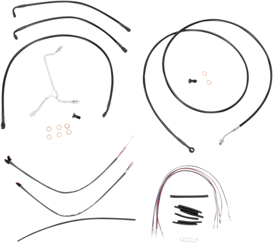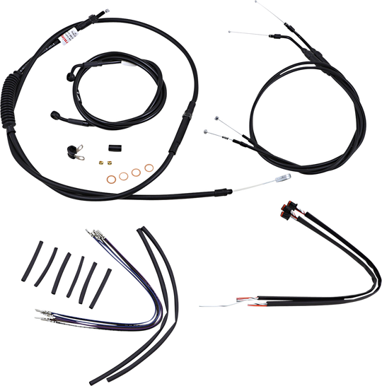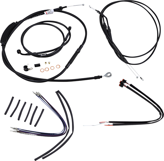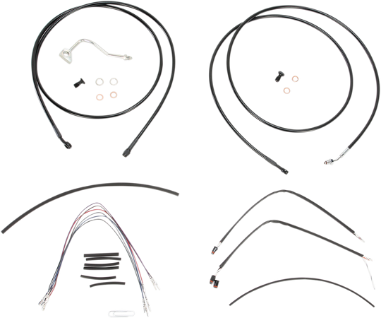 Control Kit - 15" Ape Hanger Handlebars - ABS Complete Black Vinyl Handlebar Cable/Line Kit for Ape Hanger Handlebars Complete installation kit for Burly Ape hangers Kit includes extended brake line (unless noted), extended clutch cable/clutch...Regular price $333.95 -