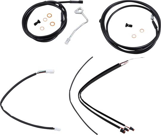 Control Kit - 18" Ape Hanger Handlebars - ABS Complete Black Vinyl Handlebar Cable/Line Kit for Ape Hanger Handlebars Complete installation kit for Burly Ape hangers Kit includes extended brake line (unless noted), extended clutch cable/clutch...Regular price $333.95