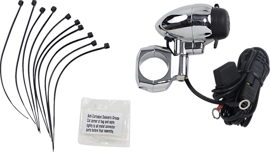 Electrical Power Point - 1-1/4" Diameter Handlebars Electrical Power Point with Handlebar Mount Perfect for plugging in accessories like cellphones, iPod®, etc. Dressed up like a silver bullet light housing for a sleek look Includes everything...Regular price $100.95 -