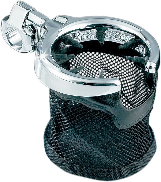 Drink Holder w/ Basket - Universal - 1-1/4" Handlebars - Chrome Universal Drink Holder with Basket Clamps to the handlebar or the clutch/brake perch and holds an average-size cup, can, bottle or mug Quick-detach mount leaves...Regular price $95.99 -
