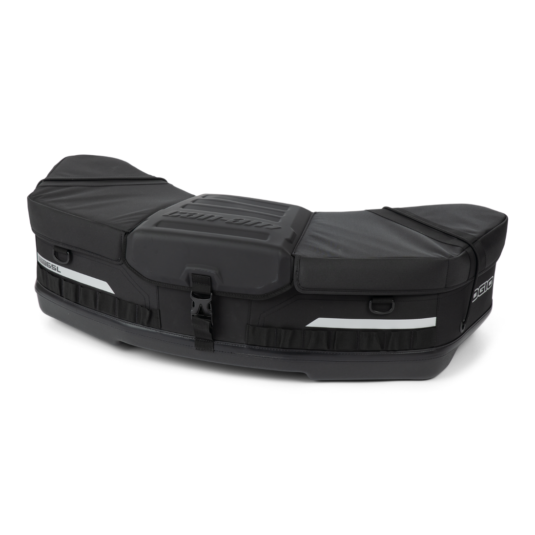 PREMIUM BAG Designed to offer the practicality of a storage bag, with the capacity of a cargo box, the Ogio premium bag offers the best of both worlds. This weather resistant bag features a Velcro surround the complete opening to make sure the elements are sealed out. The bring interior helps find any item stored inside, as well as practical separators organize the content and prevent items from shifting around while riding. Lock it in place, or remove it in second with the LinQ system, making packing and unpacking a lot easier.  Features: Tool-less installation and removal thanks to the LinQ system. 17.2 Gal (65 L) capacity semi-rigid cargo bag ideal for carrying anything you need on your vehicle. Buckle and elastic closure with a rubber seal that protects dust from entering the bag. 3-section lid for partial or full access to your bag. Inside separators for optimal bag organization. LinQ Base (715002350) is required for G2L. LinQ Luggage Rack (715001734) is required for G2S. LinQ Rack for Cargo Box (715003443) or LinQ Front Rack (715004312) is required for Defender. LinQ Cargo Rack (715003702) or LinQ Pivoting Rack (715004708) is required for Maverick Trail, Maverick Sport, Maverick Sport MAX.