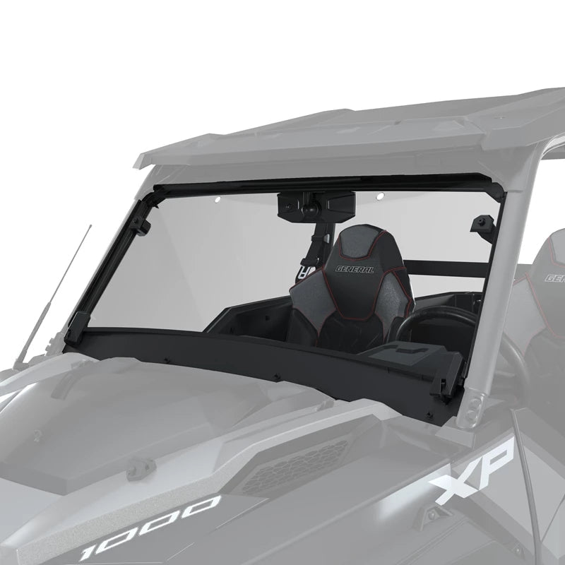 Full protection or open-air comfort, the choice is yours. Customize your in-cab experience in just seconds with this flip-down windshield. This 2-piece hard-coated poly windshield allows for true modularity for your Polaris GENERAL Lock & Ride Cab System. In the up position, experience full protection from wind, mud, rain or whatever you encounter. In the down position, take in the oncoming wind to provide a comfortable and cool in-cab environment. Two clips and a strap secure the upper portion of the windshield to the hood while in the down position, or you can opt to completely remove the upper portion and stow it away safely. Enjoy the Lock & Ride convenience of changing your windshield configuration in seconds. This revolutionary design delivers comfort in any condition without hindering your line of sight. .Includes one (1) Flip-Down Windshield - Poly.Flip between full protection and open-air comfort.Give your General the ultimate modularity with this windshield.Lock & Ride convenience let's you change on the fly Height: Weight: Length: Width: Volume: Fitment: