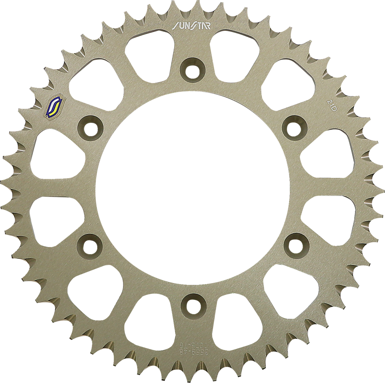 Rear Sprocket - 48 Tooth - Honda - Works/Gold Aluminum Rear Sprocket Sunstar is the largest OEM and aftermarket supplier of motorcycle and ARV sprockets in the manufacturing world for very major Japanese motorcycle builder since 1946 Constructed of high-quality, aerospace grade 7075 T-6 aluminum Computer-designed weight reduction holes for the best combination of lightness, strength, and stability Exclusive tooth-valley design provides 50% better chain contact area for the best power transfer possible Hard anodized coating for added durability and a superb finish Cleaning grooves added at the bottom of tooth area Fitment: