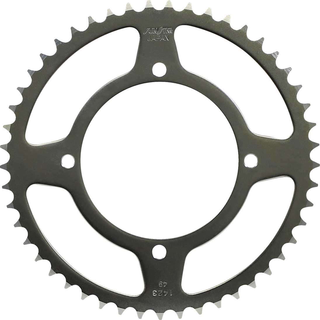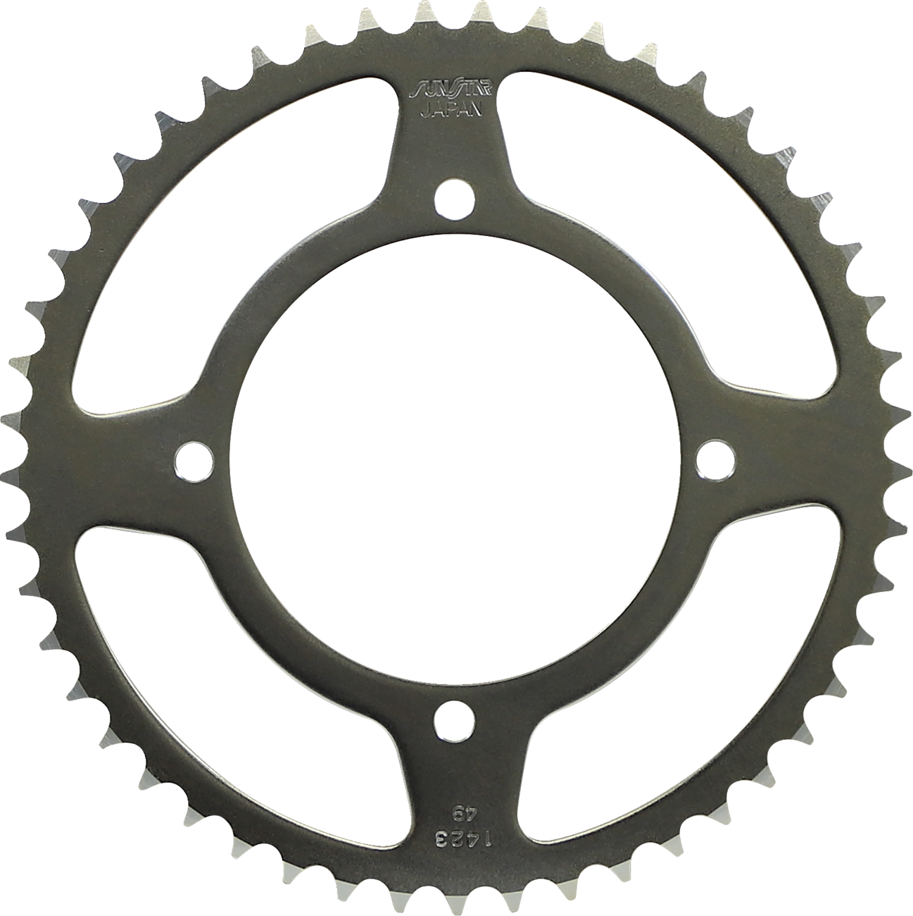 Rear Sprocket - 49 Tooth - Kawasaki Steel Rear Sprocket Sunstar is the largest OEM and aftermarket supplier of motorcycle and ARV sprockets in the manufacturing world for every major Japanese motorcycle builder since 1946 Computer-designed weight reduction holes for the best combination of lightness, strength and stability Exclusive tooth-valley design provides 50% better chain contact area for the best power transfer possible Cleaning grooves added at bottom of tooth area Fitment: