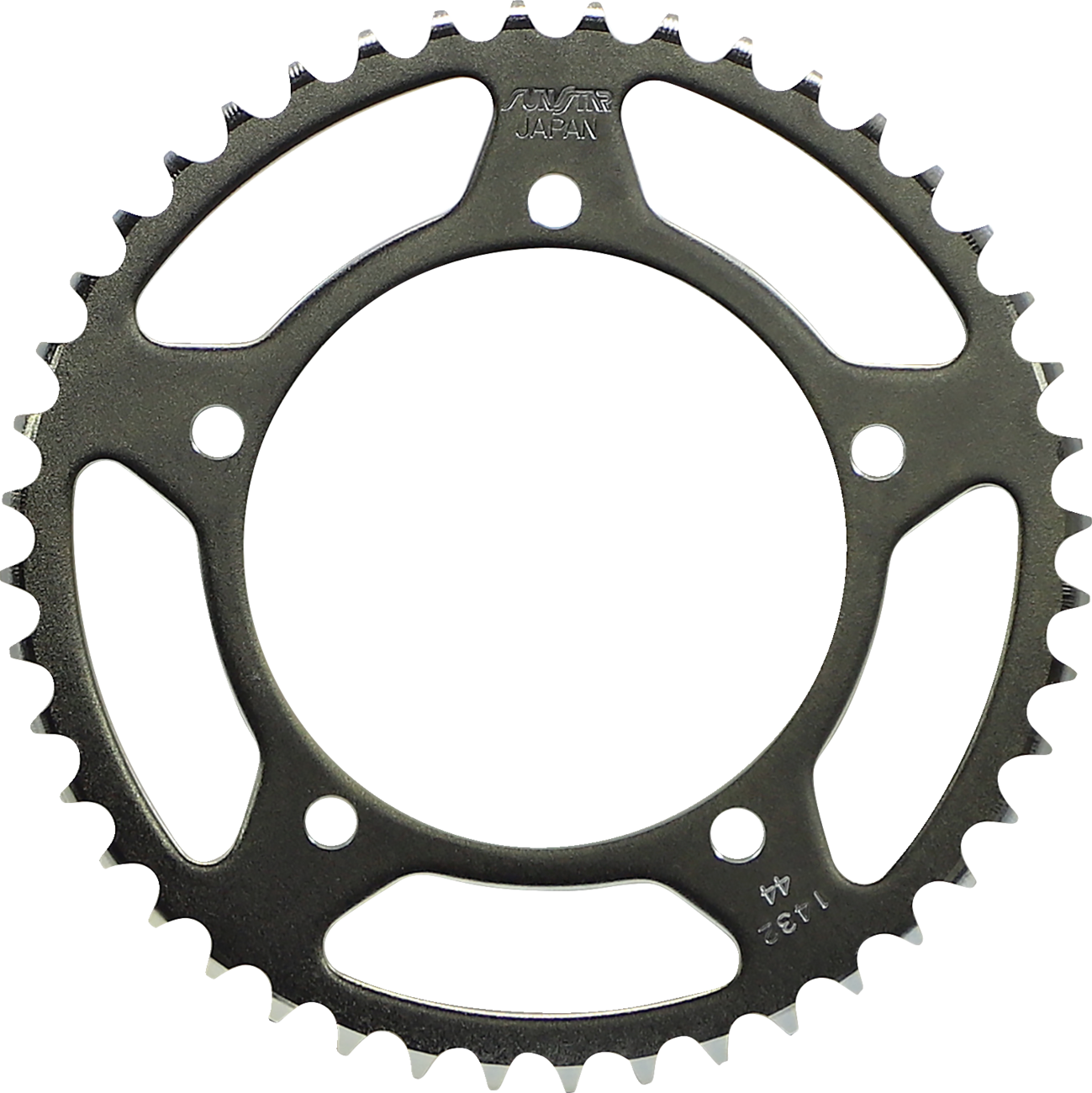 Rear Sprocket - Kawasaki - 44 Tooth Steel Rear Sprocket Sunstar is the largest OEM and aftermarket supplier of motorcycle and ARV sprockets in the manufacturing world for every major Japanese motorcycle builder since 1946 Computer-designed weight reduction holes for the best combination of lightness, strength and stability Exclusive tooth-valley design provides 50% better chain contact area for the best power transfer possible Cleaning grooves added at bottom of tooth area Fitment: