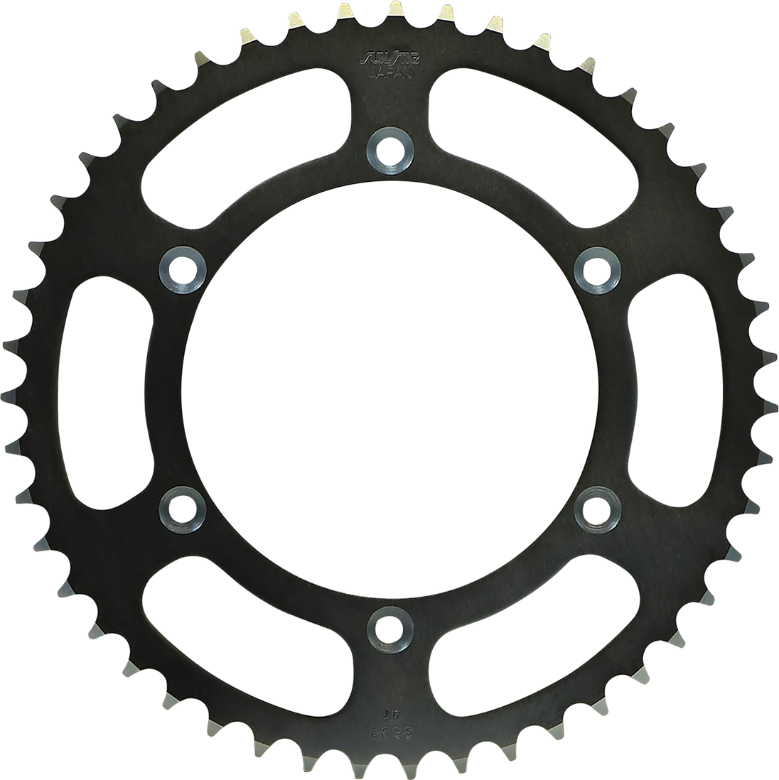 Rear Sprocket - 47 Tooth Steel Rear Sprocket Sunstar is the largest OEM and aftermarket supplier of motorcycle and ARV sprockets in the manufacturing world for every major Japanese motorcycle builder since 1946 Computer-designed weight reduction holes for the best combination of lightness, strength and stability Exclusive tooth-valley design provides 50% better chain contact area for the best power transfer possible Cleaning grooves added at bottom of tooth area Fitment: