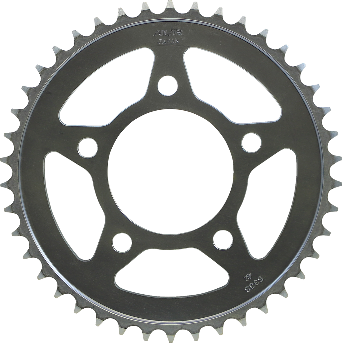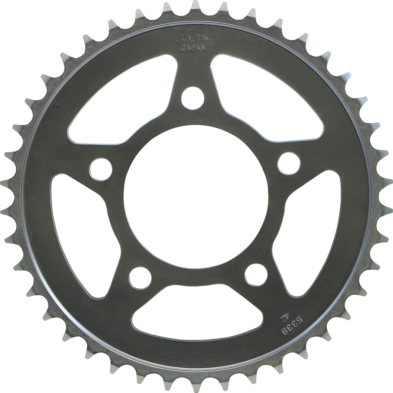 Rear Sprocket - 42 Tooth - Honda Steel Rear Sprocket Sunstar is the largest OEM and aftermarket supplier of motorcycle and ARV sprockets in the manufacturing world for every major Japanese motorcycle builder since 1946 Computer-designed weight reduction holes for the best combination of lightness, strength and stability Exclusive tooth-valley design provides 50% better chain contact area for the best power transfer possible Cleaning grooves added at bottom of tooth area Fitment: